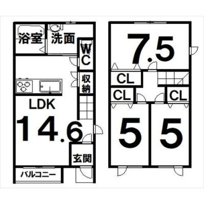 3LDK(76.36m²)└ LDK14.6×洋7.5×洋5×洋5