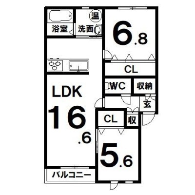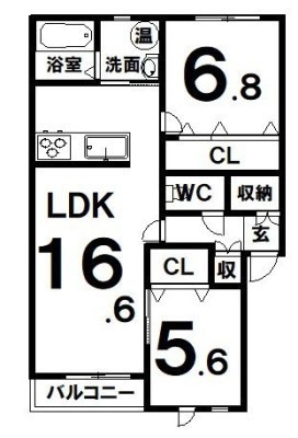 2LDK(67.98m²)└ LDK16.6×洋6.8×洋5.6