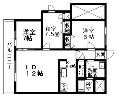 3LDK(77m²)└ LD12×K4.2×洋7×和7.5×洋6