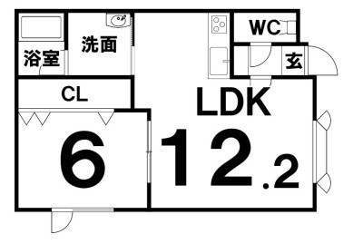 1LDK(43.08m²)└ LDK12.2×洋6