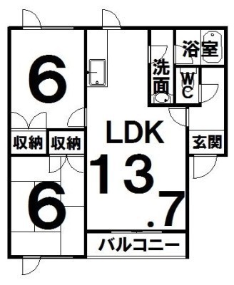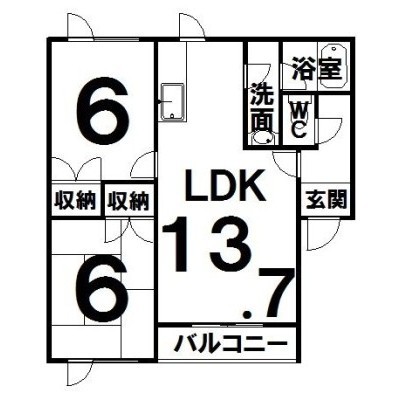 2LDK(62.77m²)└ LDK13.7×洋6×和6