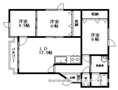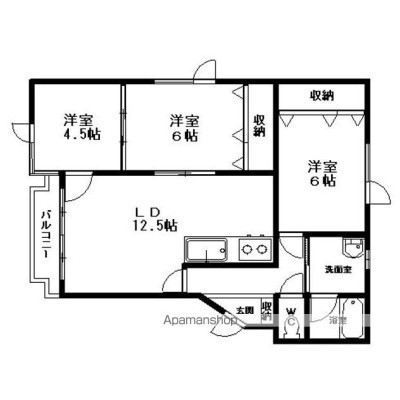 3LDK(65.61m²)└ LDK12.5×洋6×洋6.5×洋4.5