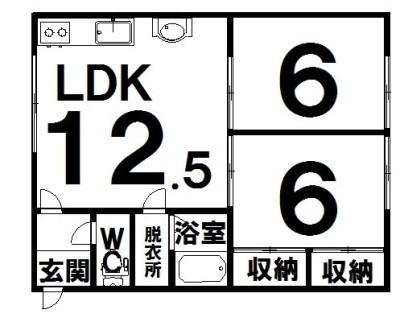 2LDK(50m²)└ LDK12.5×洋6×洋6