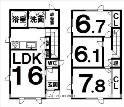 3LDK(89.84m²)└ LDK16×洋7.8×洋6.7×洋6.1