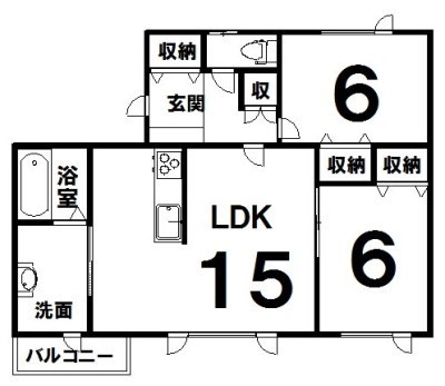 2LDK(62m²)└ 洋6×洋6×LDK15