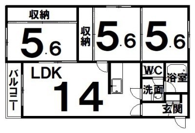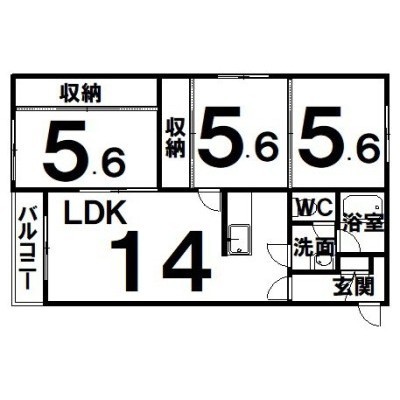 3LDK(66.4m²)└ LDK14×洋5.6×洋5.6×洋5.6