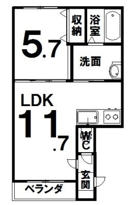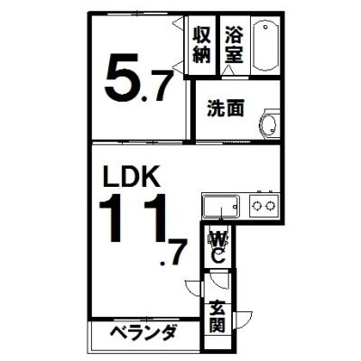1LDK(42m²)└ LDK11.7×洋5.7