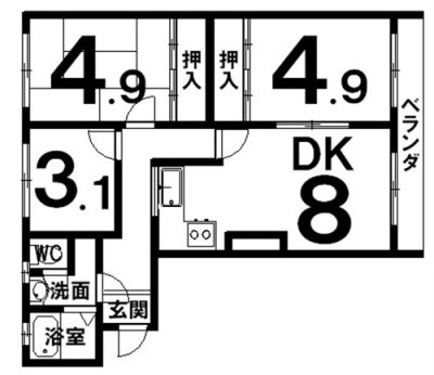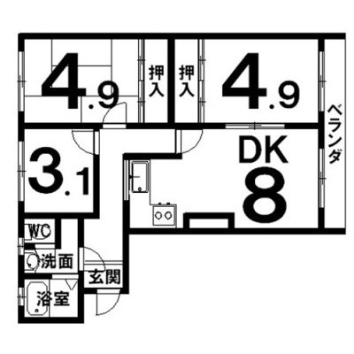 3DK(43.2m²)└ DK8×和4.9×洋4.9×洋3.1