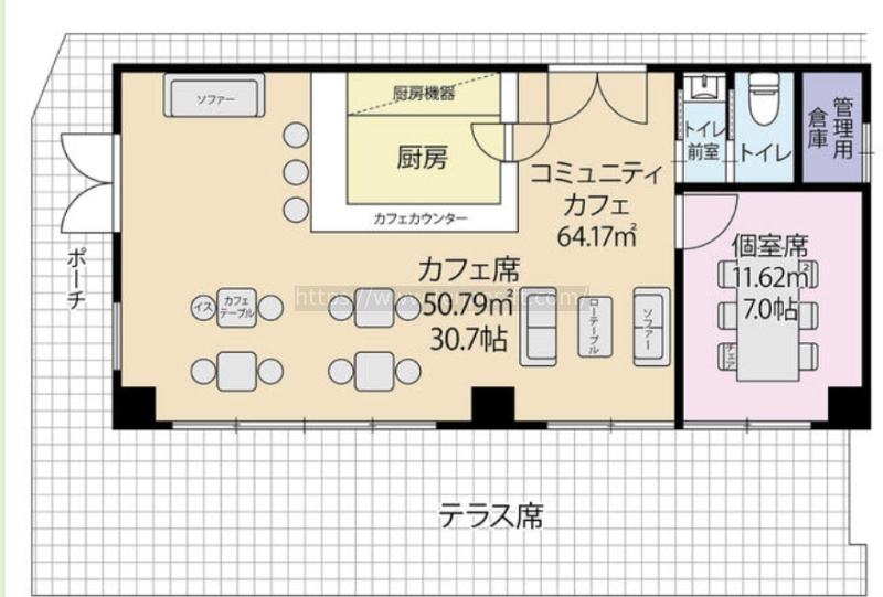 この物件は 喫茶・カフェ の居抜き物件です。