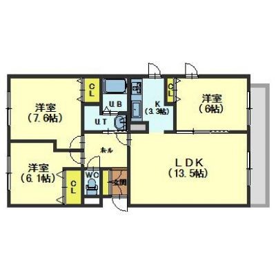 3LDK(72.83m²)└ LD13.5帖 K3.3帖 洋室6帖 洋室6.1帖 洋室7.1帖