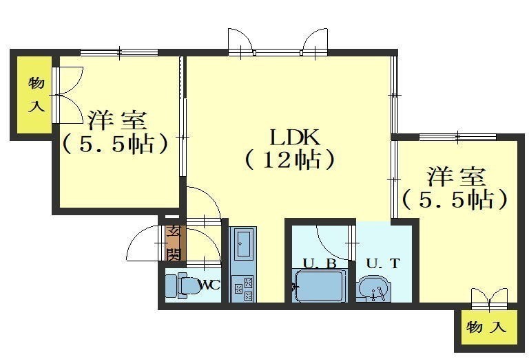 2LDK└ LDK12帖 洋室5.5帖 洋室5.5帖