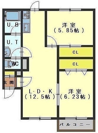 2LDK(51.77m²)└ LDK12.45帖 洋室6.23帖 洋室5.85帖