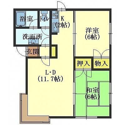2LDK(47.93m²)└ LD11.7帖 和室6帖 洋室6帖 K2帖