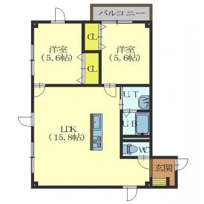 2LDK(59.45m²)└ LDK15.43帖 洋室5.7帖 洋室5.5帖