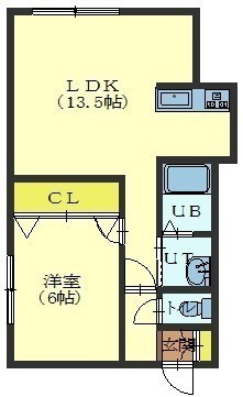 1LDK(45.55m²)└ LDK13.5帖 洋室6帖