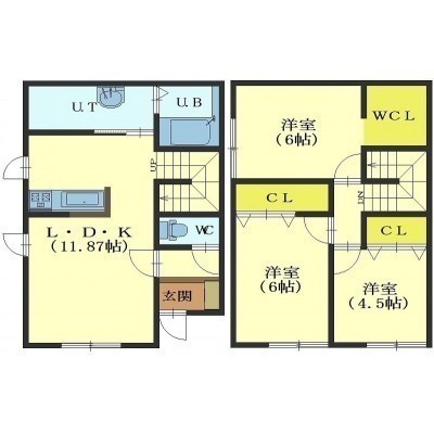 3LDK(71.42m²)└ 1階:LDK11.8帖 / 2階:洋室6帖 洋室6帖 洋室4.5帖