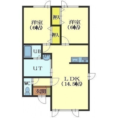 2LDK(58.68m²)└ LDK14.5帖 洋室6帖 洋室6帖