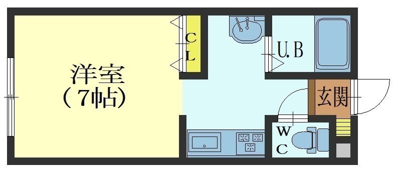 1K(21.2m²)└ 洋室7帖 K