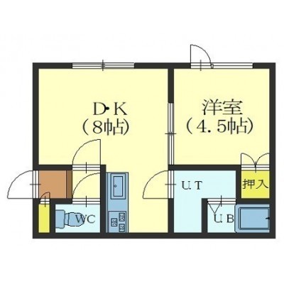 1DK└ DK8帖 洋室4.5帖