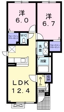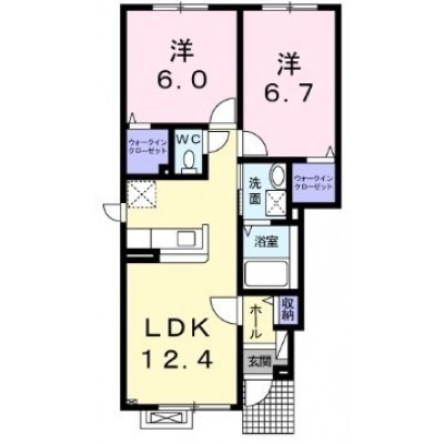 2LDK(55.95m²)└ LDK12.4帖 洋室6.7帖 洋室6帖