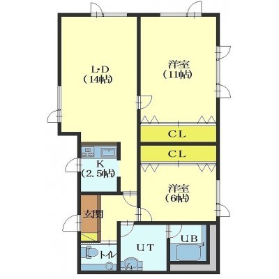 2LDK(82.9m²)└ LD14帖 K2.5帖 洋室11帖 洋室6帖
