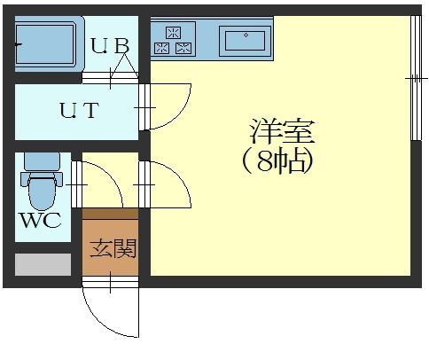 ワンルーム(19.58m²)└ 洋室8帖