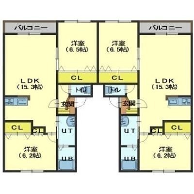 2LDK(65.46m²)└ LDK15.3帖 洋室6.5帖 洋室6.2帖