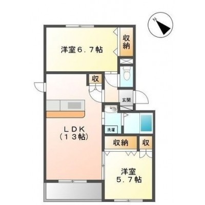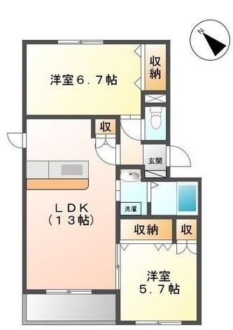 2LDK(56.66m²)└ LDK13帖 洋室6.7帖 洋室5.7帖