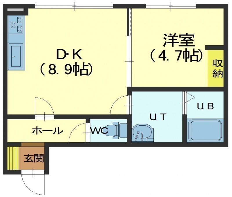 1DK└ 洋室8.9帖 洋室4.7帖
