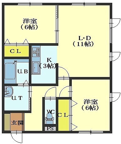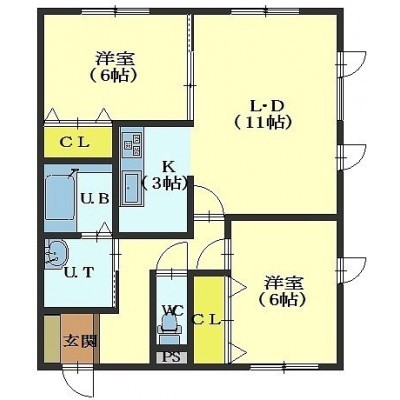 2LDK(62.9m²)└ LD11帖 K3帖 洋室6帖 洋室6帖