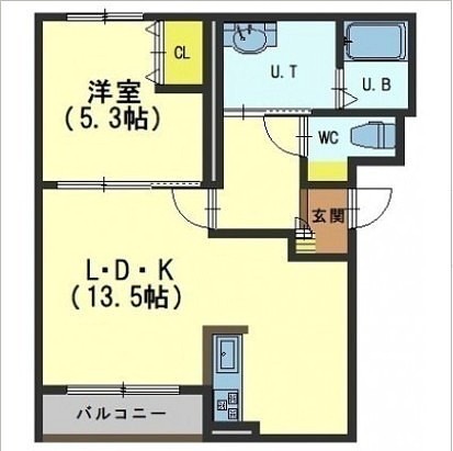 1LDK(44.06m²)└ LDK13.5帖 洋室5.3帖