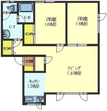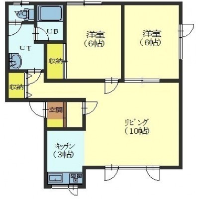 2LDK(57.02m²)└ LD10帖 洋室6帖 洋室6帖 K3帖