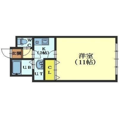 1K(34.2m²)└ 洋室11帖 K2帖
