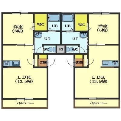 1LDK(45.2m²)└ LDK13.5帖 洋室6帖