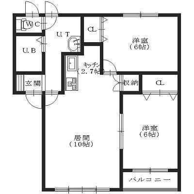 2LDK(54.54m²)└ LD10帖 K2.7帖 洋室6帖 洋室6帖