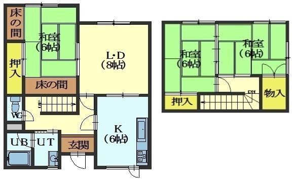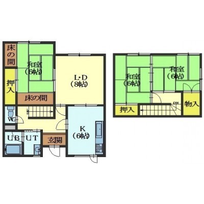 3LDK(85.96m²)└ 1階:LD8帖 K6帖 和室6帖 / 2階:和室6帖 和室6帖