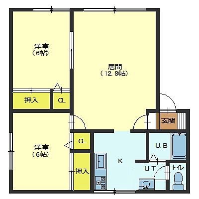 2LDK(59.58m²)└ LDK12.8帖 洋室6帖 洋室6帖 / 12.8/6/6/K3.4