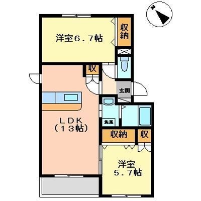 2LDK(56.66m²)└ LDK13帖 洋室6.7帖 洋室5.7帖