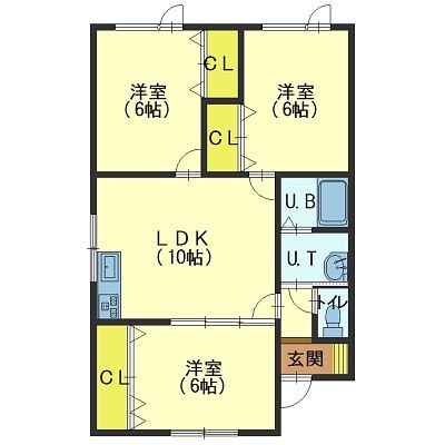 3LDK(61.16m²)└ LDK10帖 洋室6帖 洋室6帖 洋室6帖