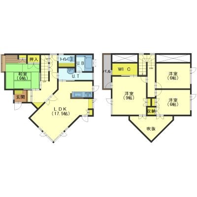 備考 駐車場小型車の場合3台可・現地要確認 その他設備:システムキッチン・LPガス・トイレ/バス別・シャンプードレッサー・水洗・集中暖房・TVインターホン・BS・灯油ボイラー・バルコニー・物置 間取り【1F】LDK17.5/和6.0 【2F】洋9.0/洋6.0/洋6.0 学区:札幌大学 自動車短期 北海学園 北海商科大学 日本福祉月寒 経専 総合電子 中央調理 北海道農業 文化服装 幼児保育 学区色がついているアイコンをクリックすると、本物件までの道順を見ることができます。