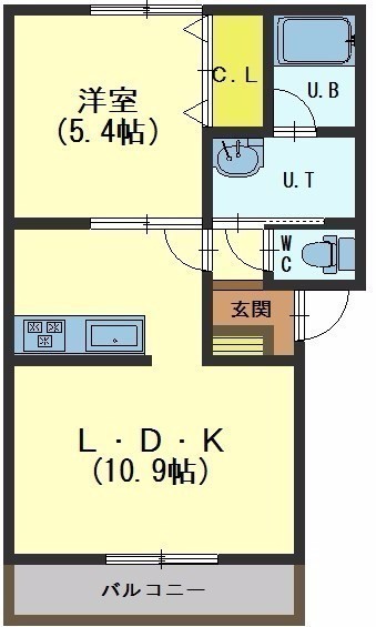 1LDK(38.21m²)└ LDK10.9帖 洋室5.4帖