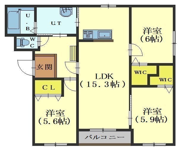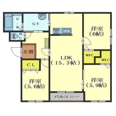 3LDK(72.64m²)└ LDK15.3帖 洋室6帖 洋室5.9帖 洋室5.6帖