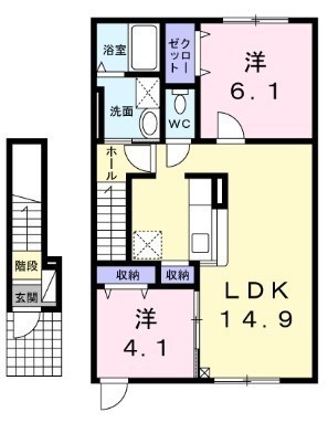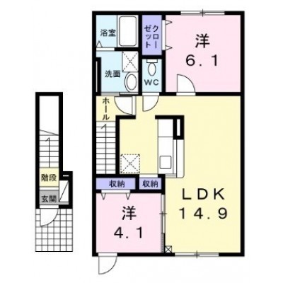 2LDK(58.87m²)└ LDK14.9帖 洋室6.1帖 洋室4.1帖