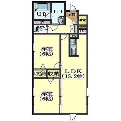 2LDK(58.74m²)└ LDK13.7帖 洋室6帖 洋室6帖