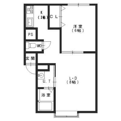 1LDK(34.61m²)└ LD8帖 洋室6帖 K3帖