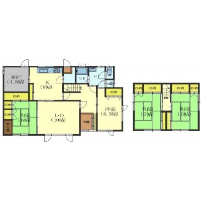 4LDK(115.02m²)└ 1階:LD10帖 K8帖 洋室6.5帖 和室6帖 / 2階:和室6帖 和室6帖