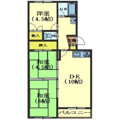 3DK└ DK10帖 和室6帖 和室4.5帖 洋室4.5帖