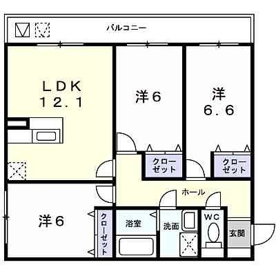 3LDK(72m²)└ LDK12.1帖 洋室6帖 洋室6帖 洋室6帖