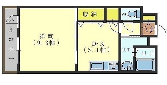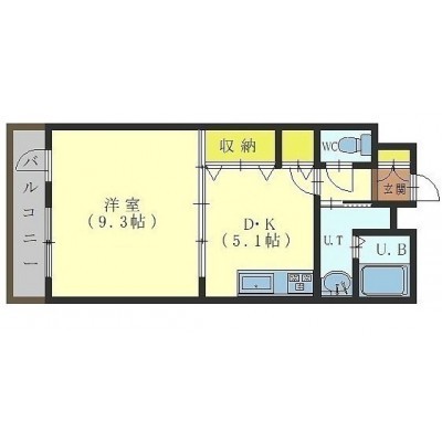 1DK(35m²)└ 洋室9.3帖 DK5.1帖