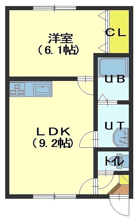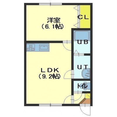 1LDK(34.38m²)└ LDK9.2帖 洋室6.1帖
